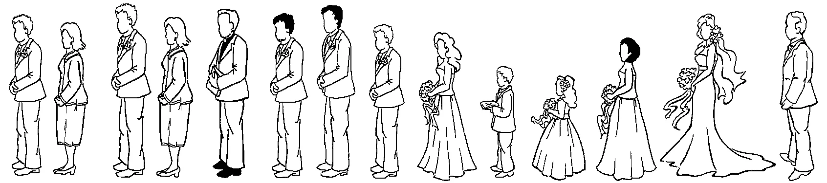 Bride is escorted by both parents Her mother on the Bride's right and his father on her left.
